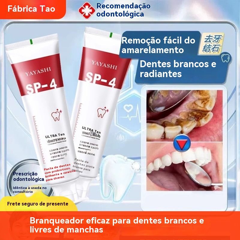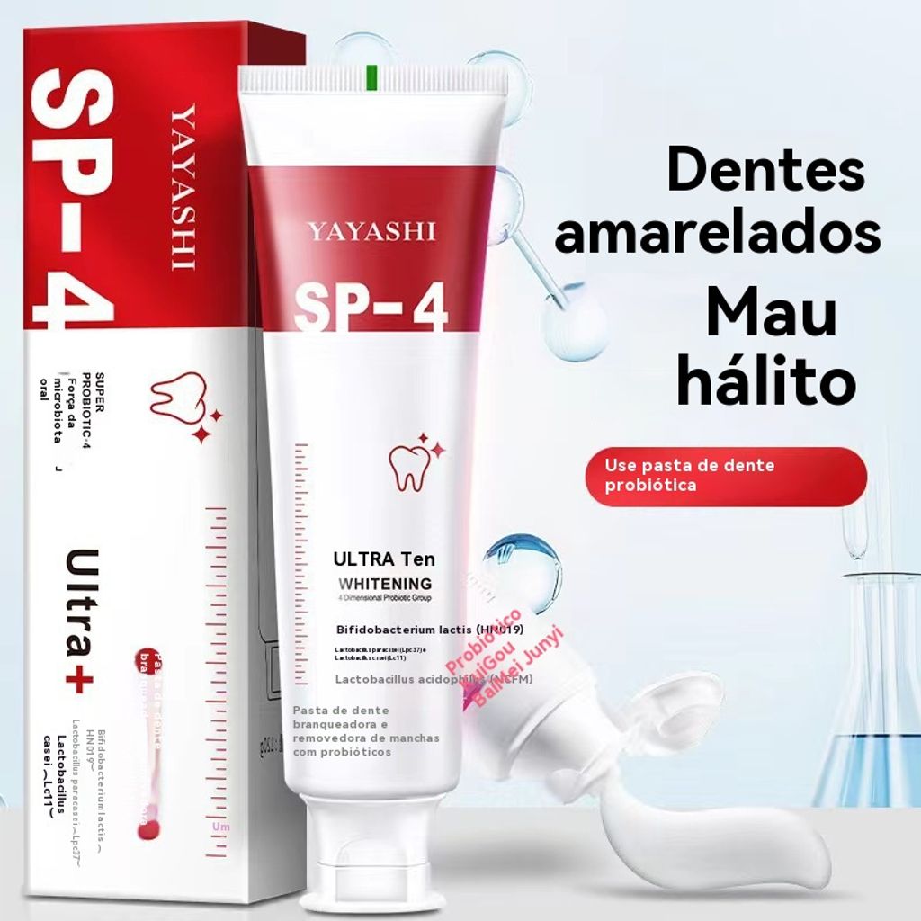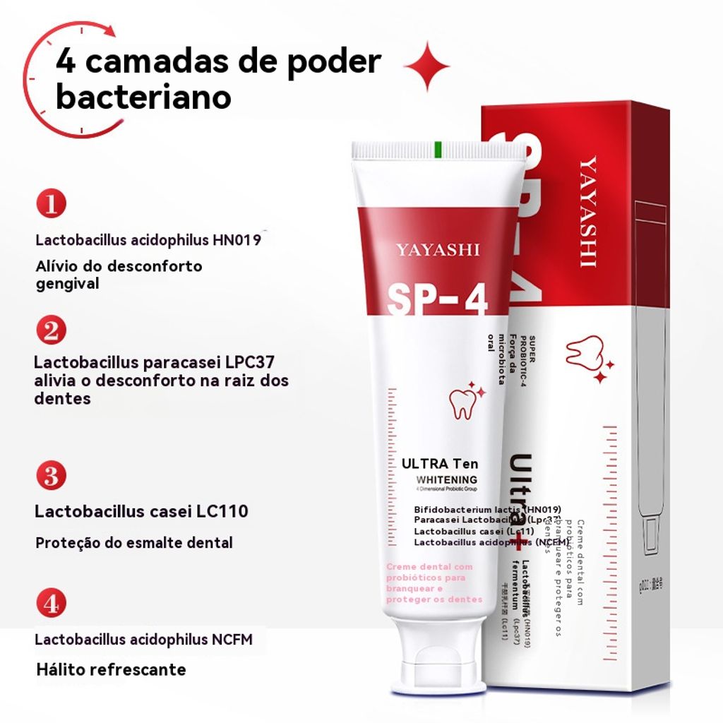 Essencial para Encontros e Trabalho! Terminador de Dentes Amarelados e Mau Hálito! Creme Dental Probiótico SP-4